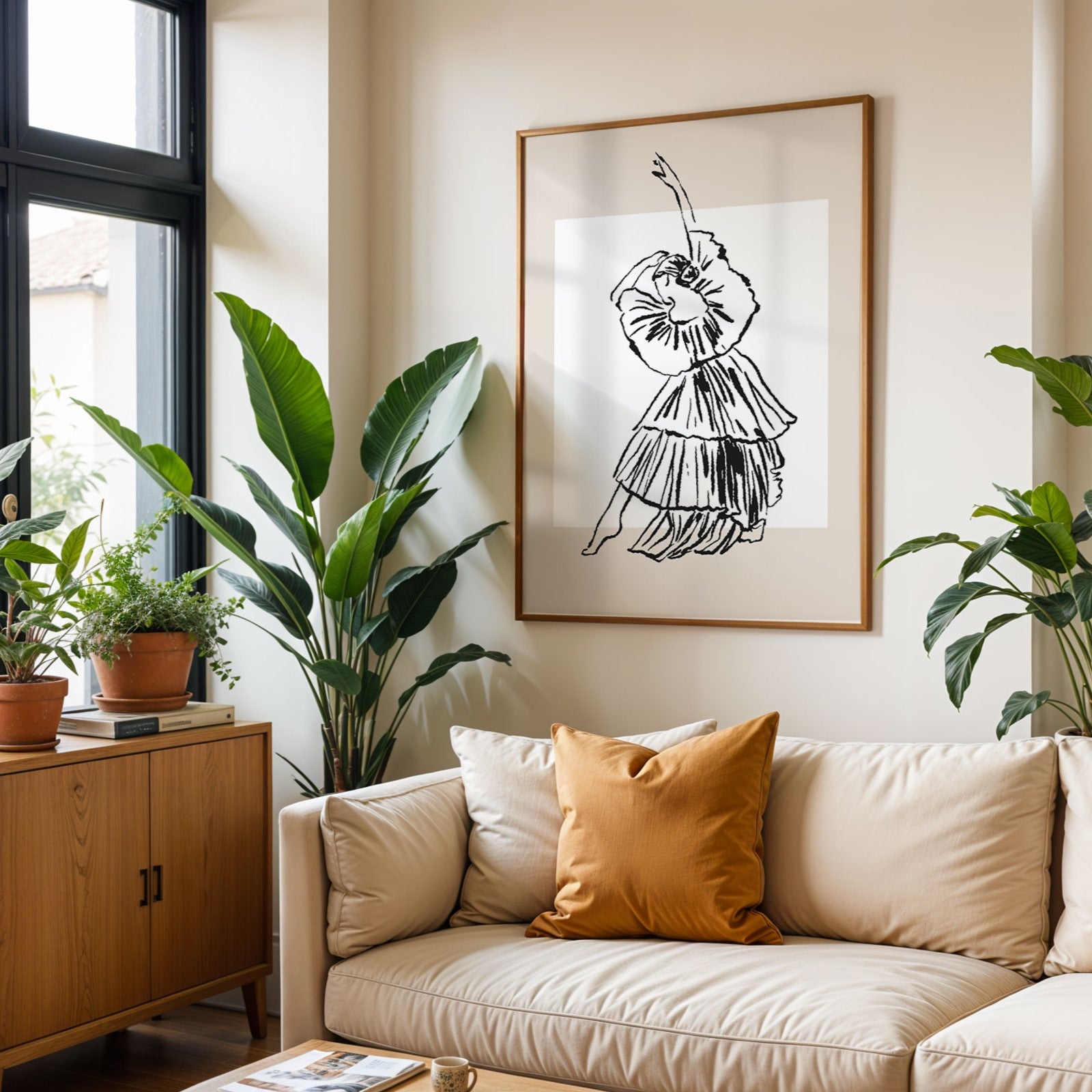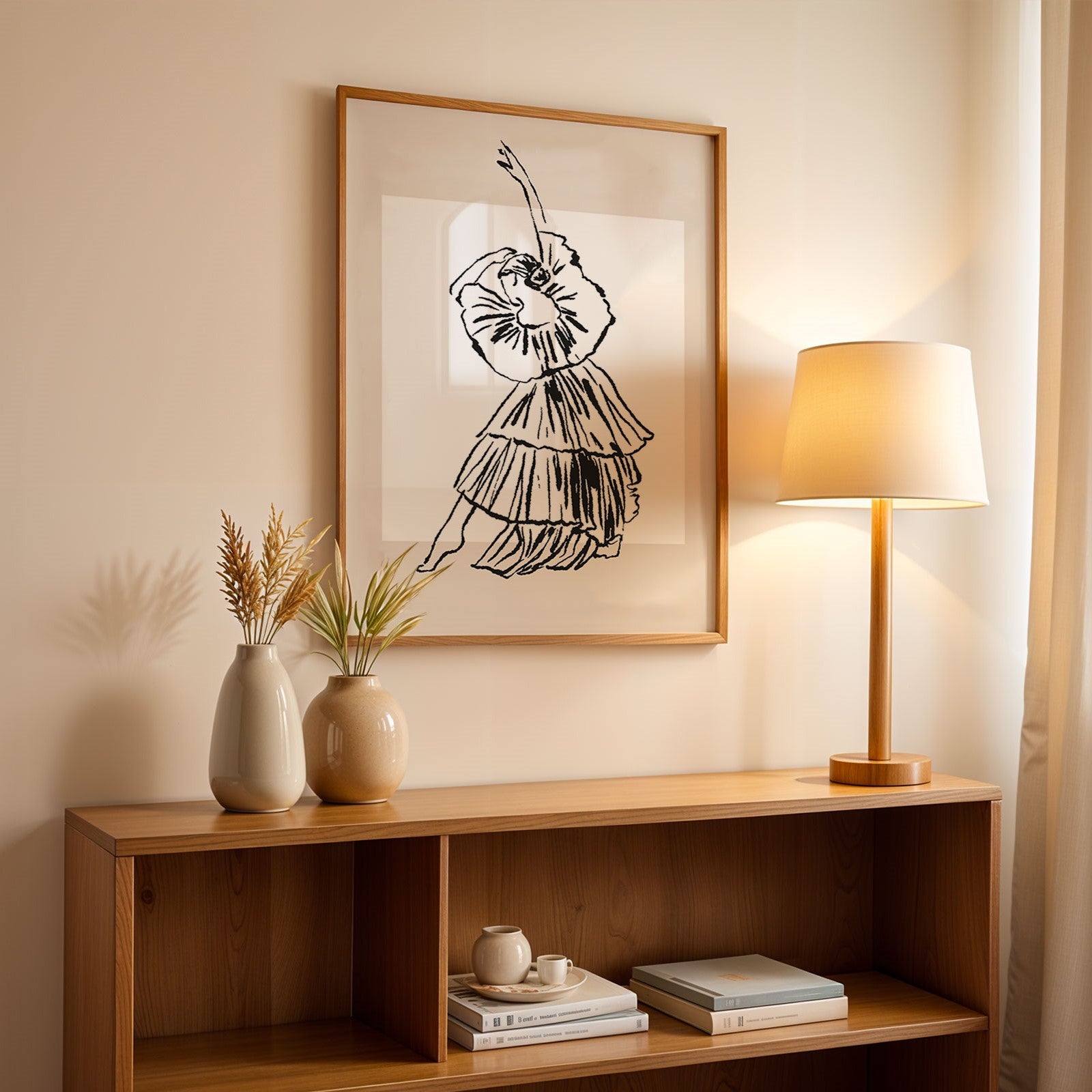 Bring the beauty of dance into your home with this elegant and eco-friendly ā€œBallerina’s Grace Wall Artā€ framed poster.